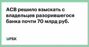 Читать далее »АСВ решило взыскать с владельцев разорившегося банка почти 70 млрд руб.