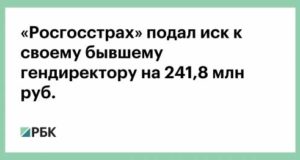 Страховая компания «Росгосстрах» подала иск к своему бывшему директору Дмитрию Маркарову иск на сумму 241,8 млн руб. Об этом сообщается в картотеке электронных дел. Согласно данным картотеки, иск был подан в Арбитражный суд Московской области. Заявление было