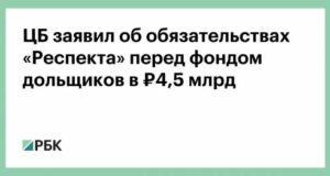 ЦБ заявил об обязательствах «Респекта» перед фондом дольщиков в ₽4,5 млрд